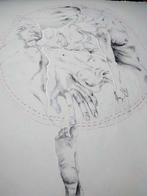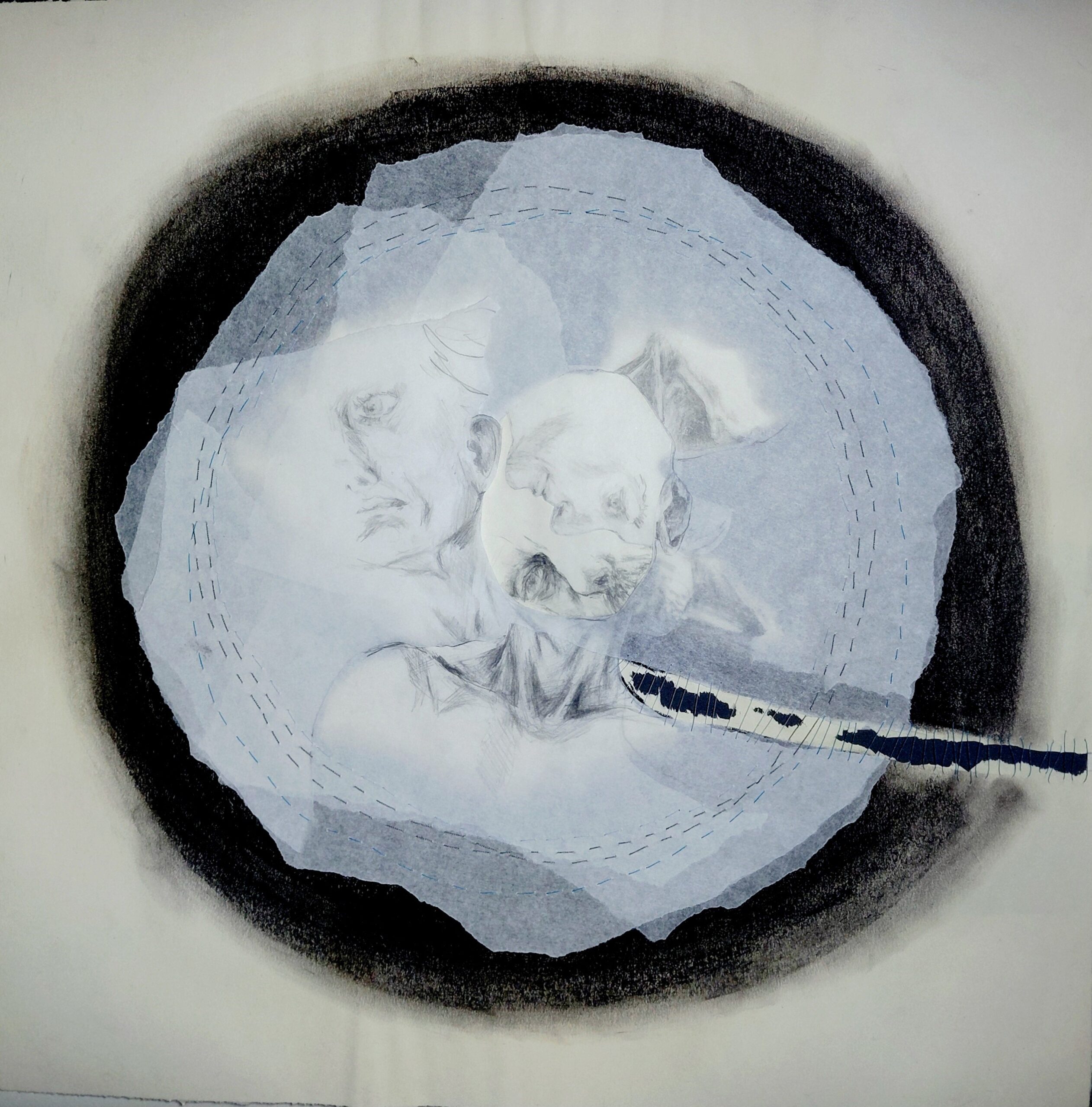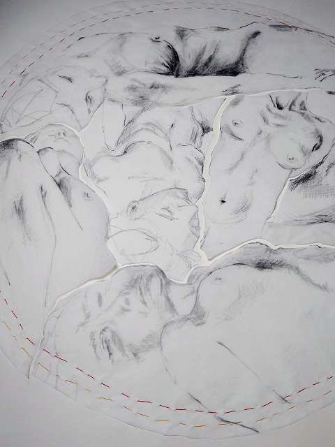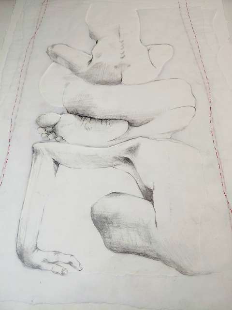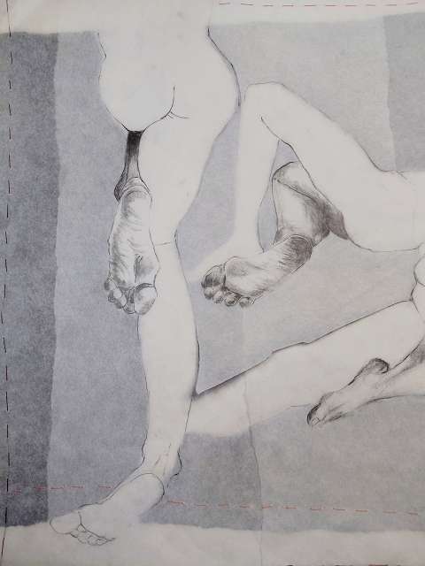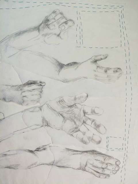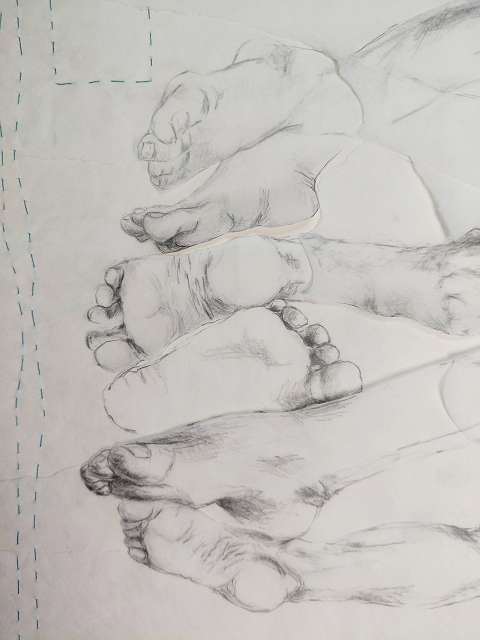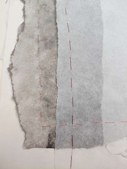 Zeichnungen, Bleistift & Kreide auf (Transparent) Papier – Schicht für Schicht vernäht.